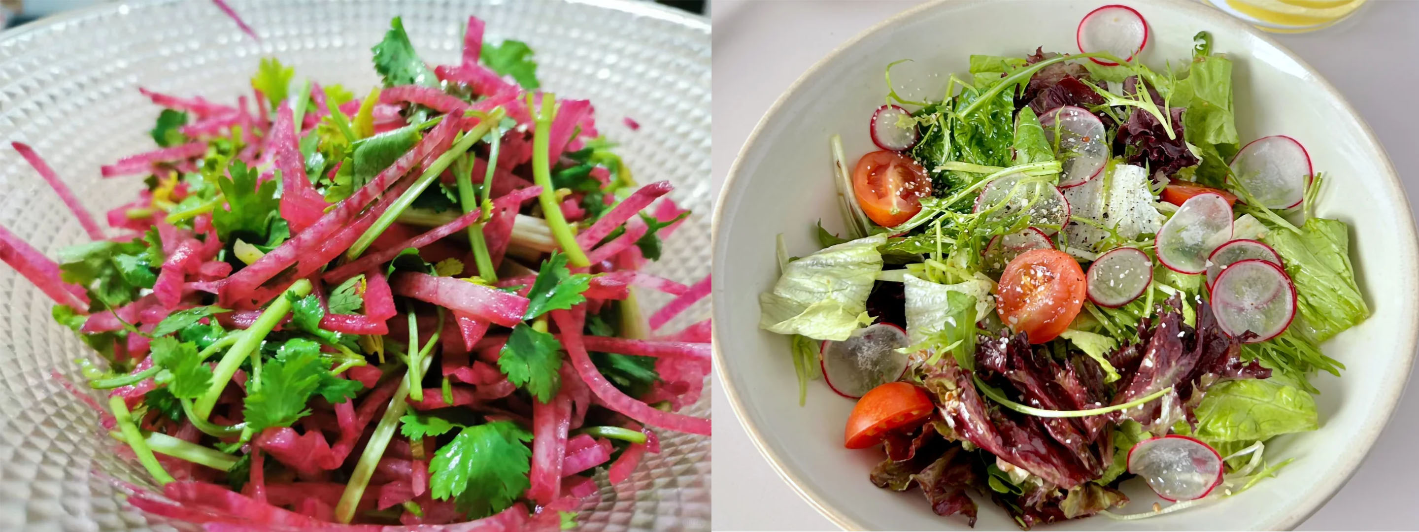 Generally speaking, purple beauty tastes sweet and sour, while cherry radish is sweeter. If you like a more sweet taste, you can choose cherry radish seeds; if you like a milder sweetness and sourness, you can choose our purple beauty seeds. Of course, you can also choose our juicy, crisp and sweet emerald green radish seeds.