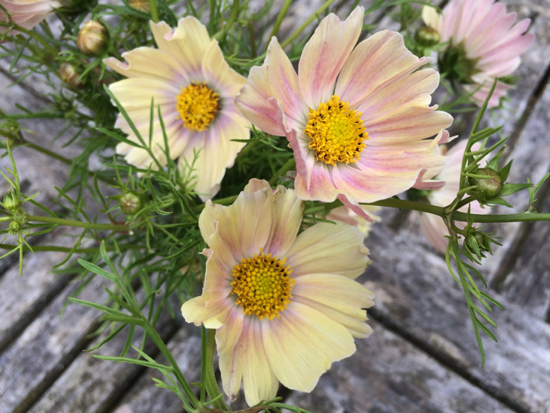 Cosmos bipinnatus ‘Apricot Lemonade’ is long & constant blooming through summer & autumn.