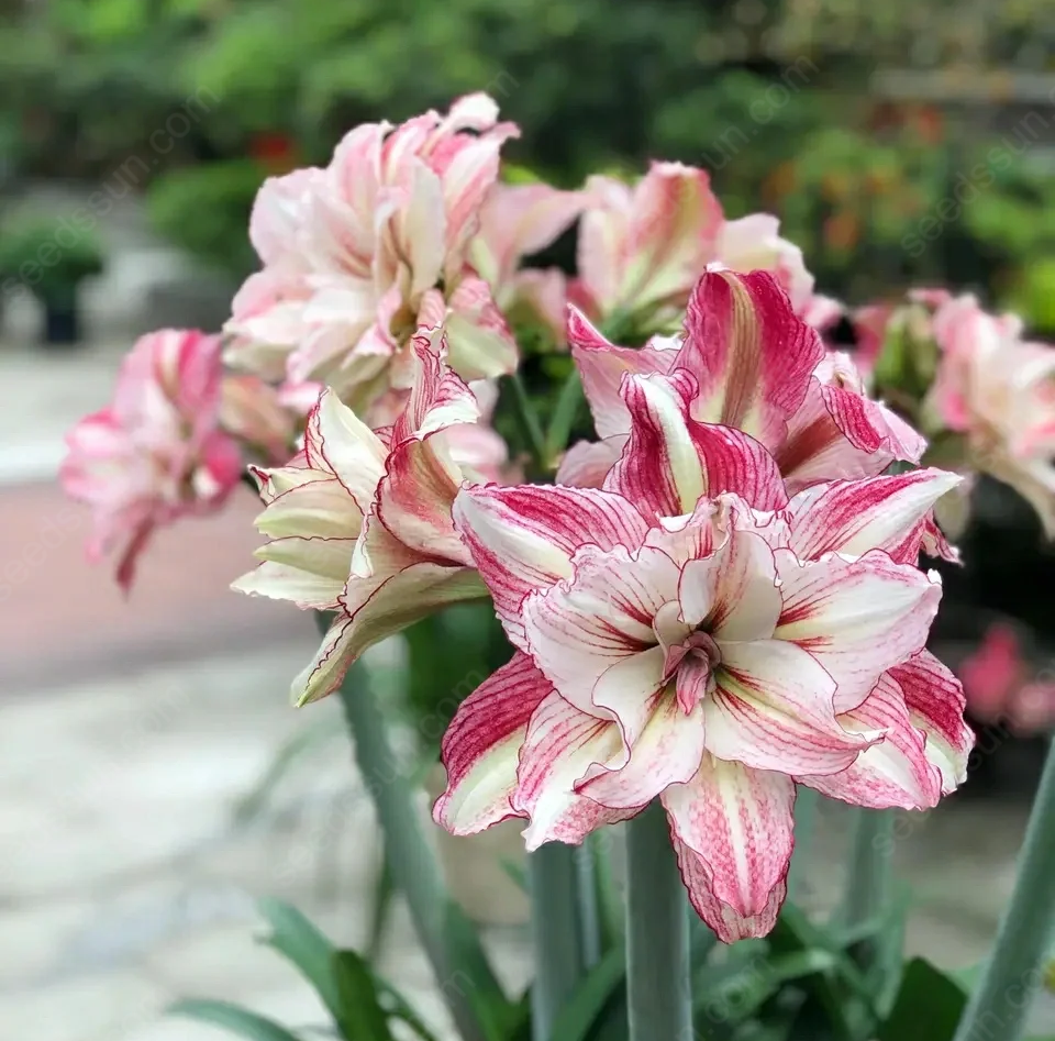 🌸 Amaryllis 'Angela' is a popular bulbous plant known for its huge and charming flowers. Each flower presents a bright red color with delicate white edges, showing a beautiful visual effect. ✨ This flower is not only beautiful, but also adds warmth and vitality to your home.