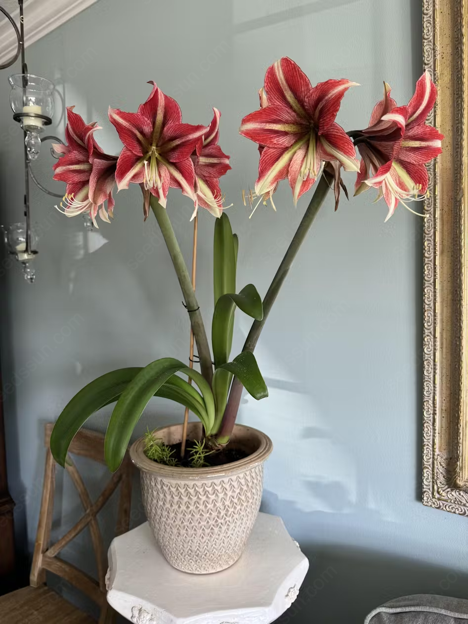 🌟 Let your home shine like a red star! Amaryllis 'Ruby Star' is famous for its unique red and white petals, which present a beautiful jewel-like luster. 💖 Whether it is indoor decoration or gift giving, this amaryllis can add elegance.