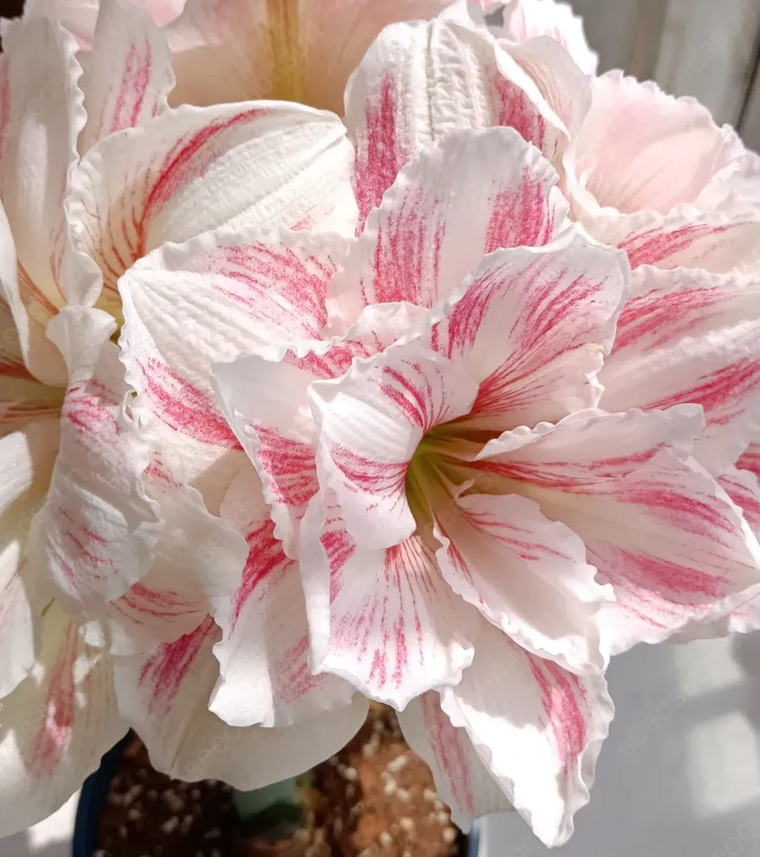 🌱 Planting Amaryllis 'Watercolor' is very simple: First, plant the bulb in well-drained flower soil, exposing about 1/3 of the top of the bulb. 💧 Water lightly and place in a sunny place, and you can usually see gorgeous flowers blooming in 6-8 weeks. 🌞 Don't forget to keep the soil slightly moist, but avoid waterlogging to ensure healthy growth of the plant.