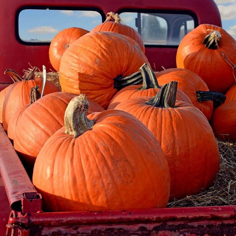 This pumpkin is perfect for Halloween carving with defined ribs and nice handles. The fruit is 17"-18" in diameter and tends to be round with rough, red-orange skin and bright, yellow-orange 3"-4" thick flesh. As an exhibition pumpkin, it can grow to over 100 lb. It's also good for pies and canning.
