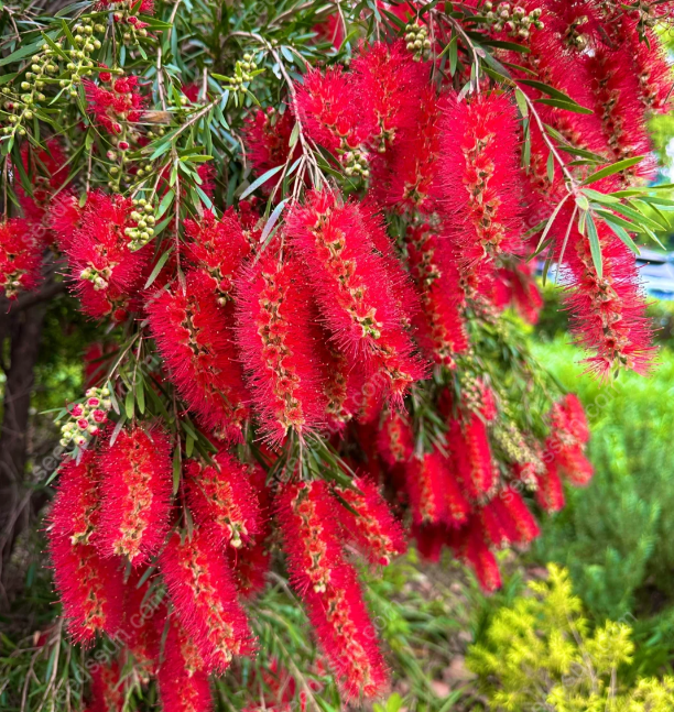 🌸Unique inflorescence: The inflorescence presents a bottlebrush-like shape, hence the name bottlebrush tree.