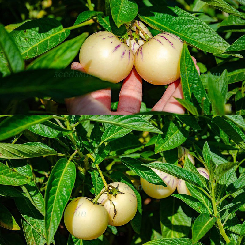 🌟The berries are oval or conical, with light yellow skin when ripe, some with purple stripes, light milky yellow flesh, and light yellow seeds.