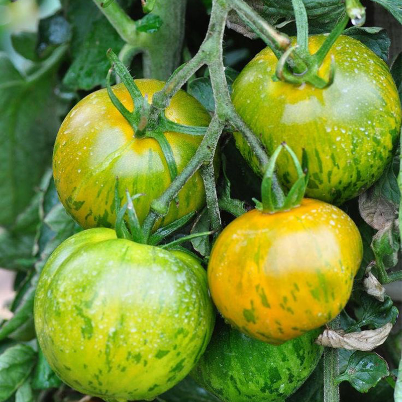 • Color and Appearance: Named for its unique appearance, Green Zebra Tomatoes typically have a green background with yellow or dark green stripes or spots, forming a zebra-like pattern. This distinctive look sets them apart from other tomato varieties.