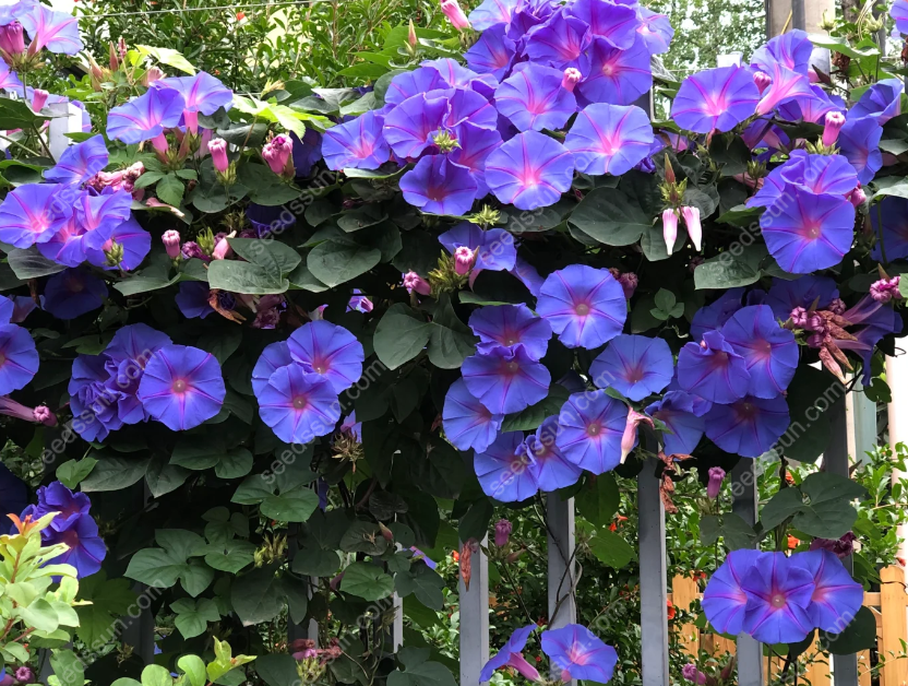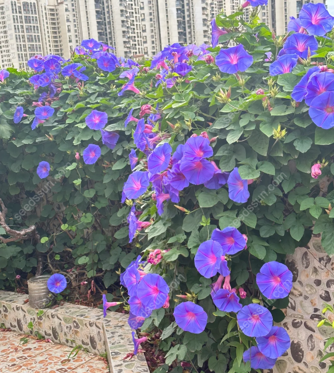 🌿Strong climbing ability: Morning glory vines can quickly climb supports, fences, etc. to create a three-dimensional flower wall.