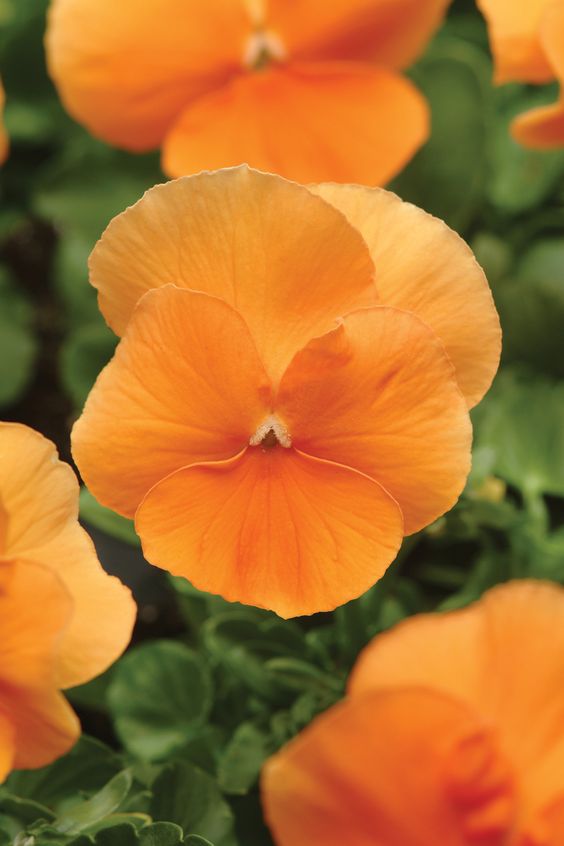 Inspire® DeluXXe Orange, an F1 hybrid pansy, is a large-flowered evergreen perennial, usually grown as a cool weather annual or biennial, offering early spring and late summer/early fall interest, blooming all winter in mild climates. Uniform and long blooming, the plants produce extra-large bright-orange flowers for 4 to 6 months. Borne singly on short, upright stems, the fragrant flowers make adorable kitchen table bouquets or cheeky additions to floral displays. And butterflies flock to them.