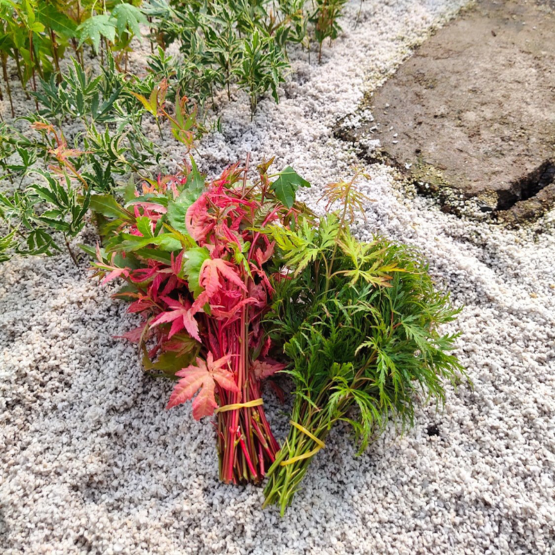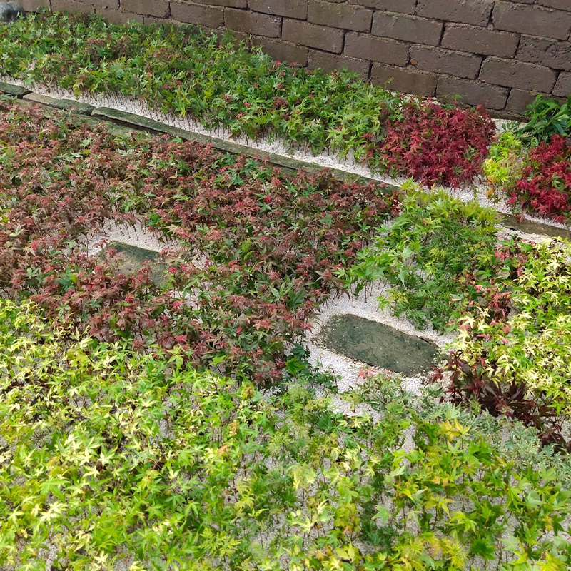 Red maple leaves will gradually change it's color from green to yellow, golden and orange. Suitable for garden potting plant.