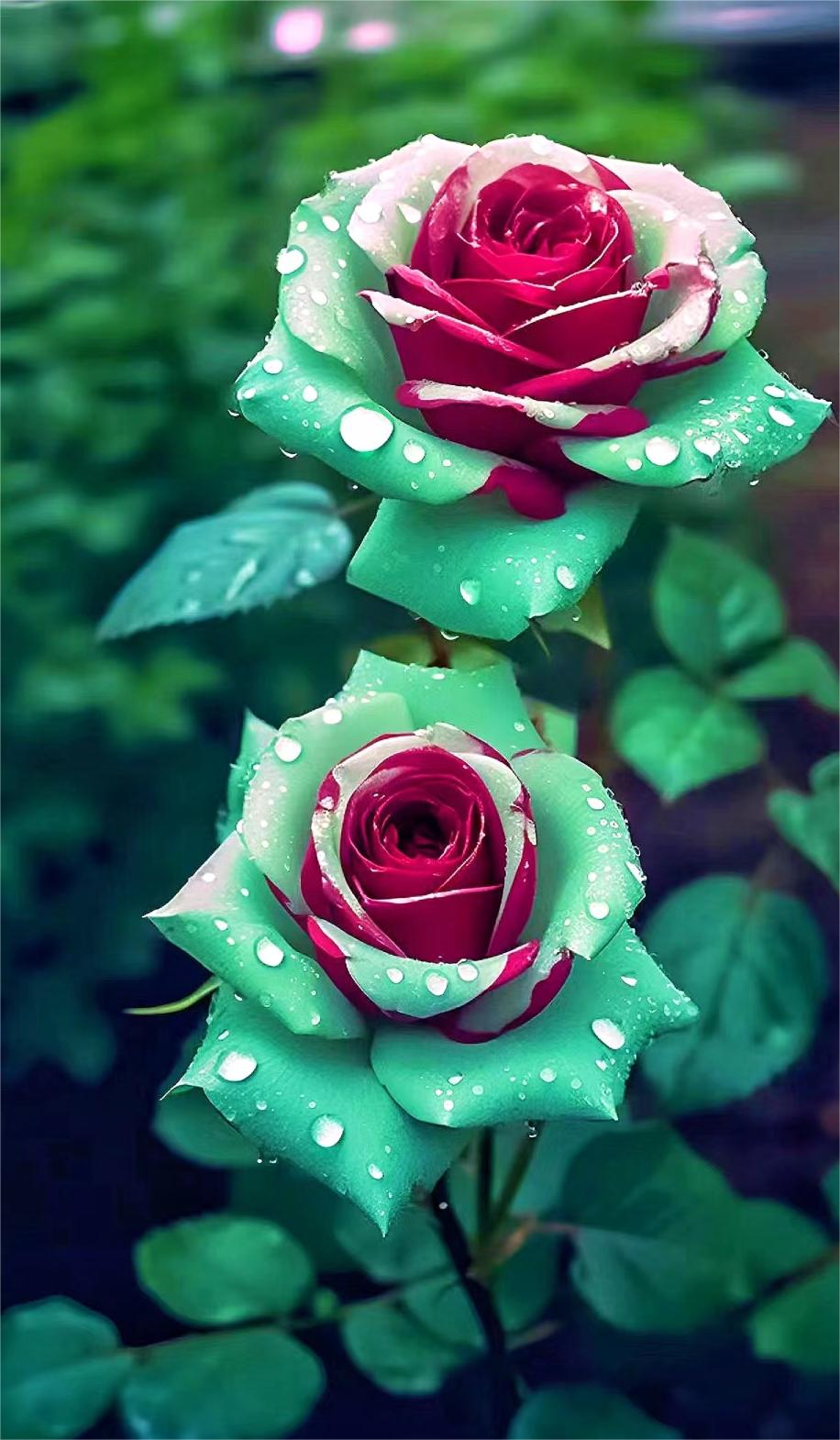 Embrace the captivating allure of Ruby Green Twin Roses and let their contrasting beauty transform your garden into a masterpiece. 🌹🍃