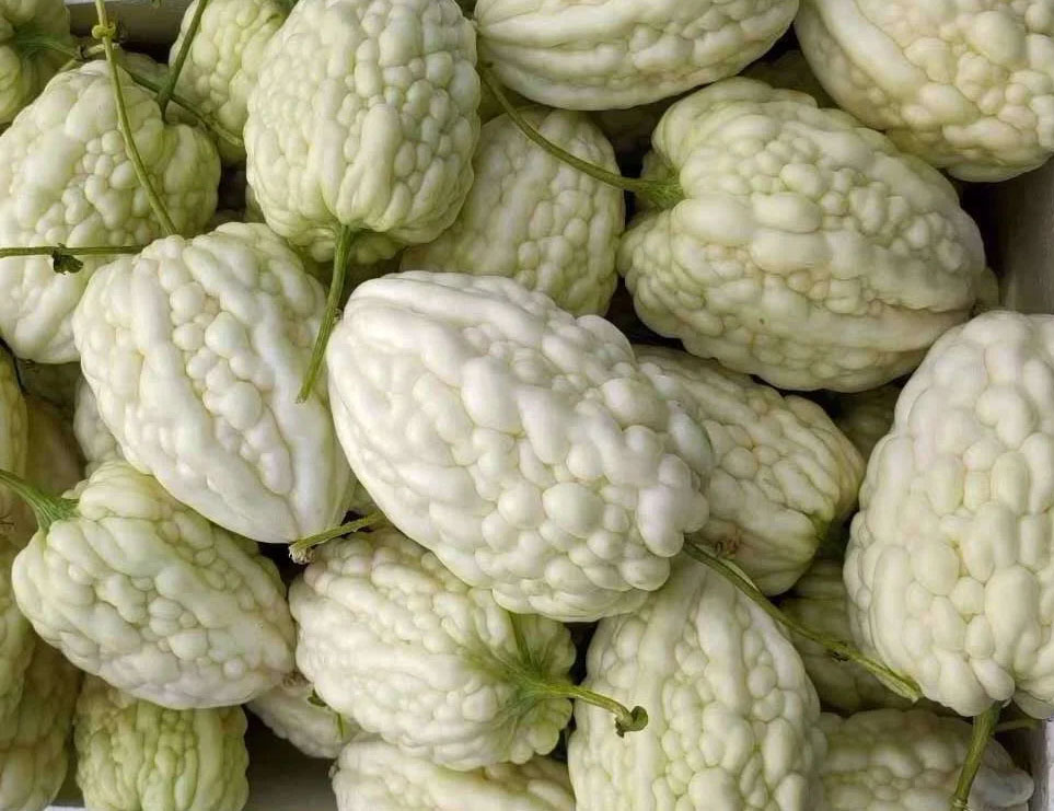 White Jade Bitter Melon is a newly cultivated variety.Its fruit is white in color, thick in flesh, and juicy. Its tender tissue is crisper than green bitter melon. It has a refreshing taste and lighter bitterness than green bitter melon. Its sweetness can reach more than 6°. It can be eaten directly without soaking to remove the bitterness.You can eat it as fruit.